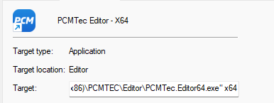 "C:\Program Files (x86)\PCMTEC\Editor\PCMTec.Editor64.exe" x64
